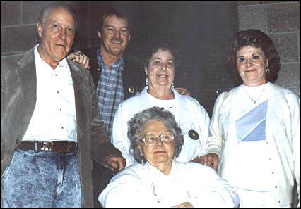 FROM LEFT TO RIGHT: Bill Cochran, Alan Clark, Gloria Julson, Pat Hickey. FRONT: Alice Cochran (Eddie's brother, sisters and mother) June 1991 |